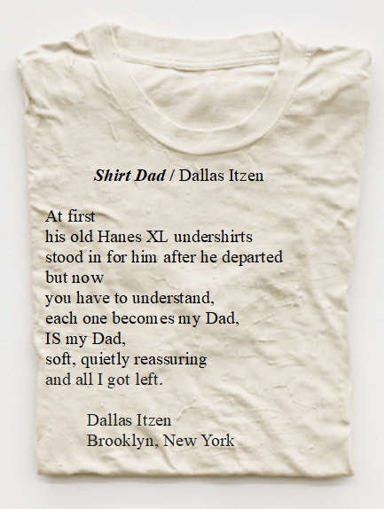 Shirt Dad / Dallas Itzen Published on February 6, 2020 by Editorial Staff Here’s our poem of a week, a single sentence poem from 3rd Wednesday’s winter issue by Dallas Itzen of Brooklyn, New York. Share this: Click to share on X (Opens in new window) X Click to share on Facebook (Opens in new window) Facebook Like Loading... Related