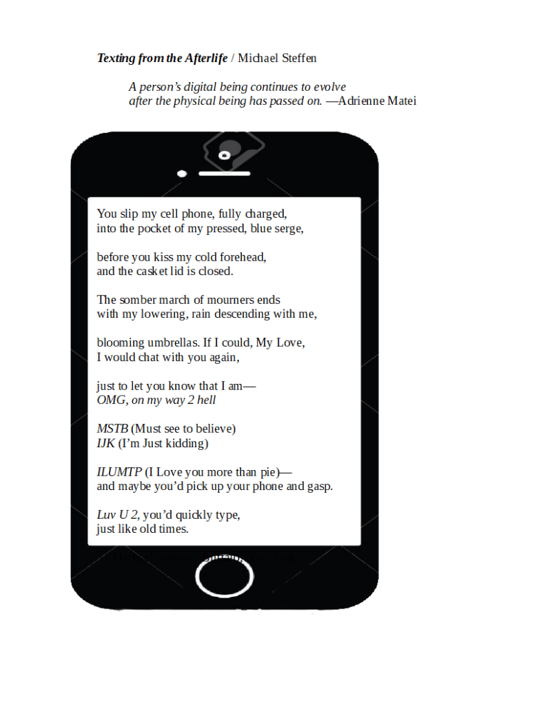 Our editors were captivated by the subject of this poem from poet Michael Steffen of Buffalo, New York. This poem of the week is a preview from the fall issue of 3rd Wednesday Magazine, due out at the end of September.