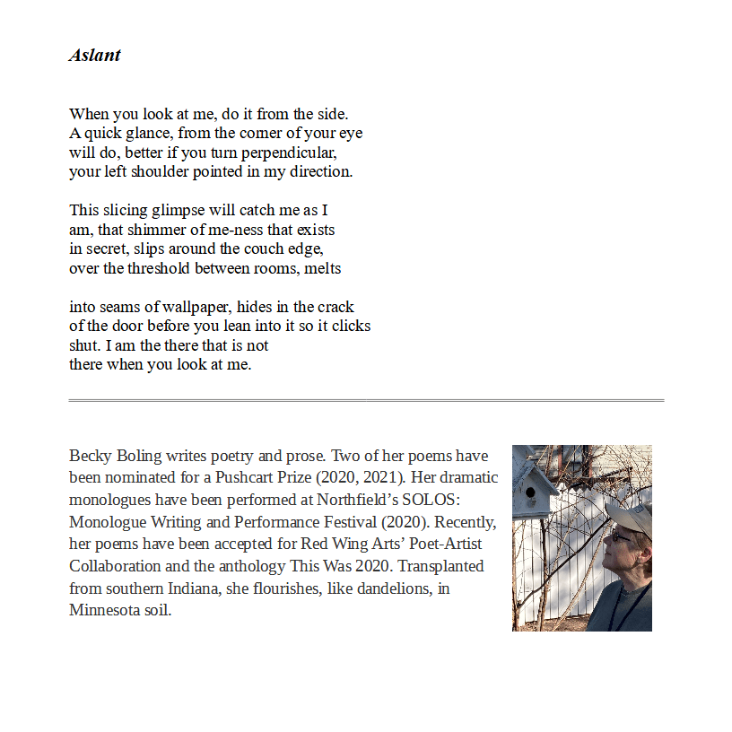 Aslant / Becky Boling Published on February 22, 2022 by Editorial Staff Share this: Click to share on X (Opens in new window) X Click to share on Facebook (Opens in new window) Facebook Like Loading... Related