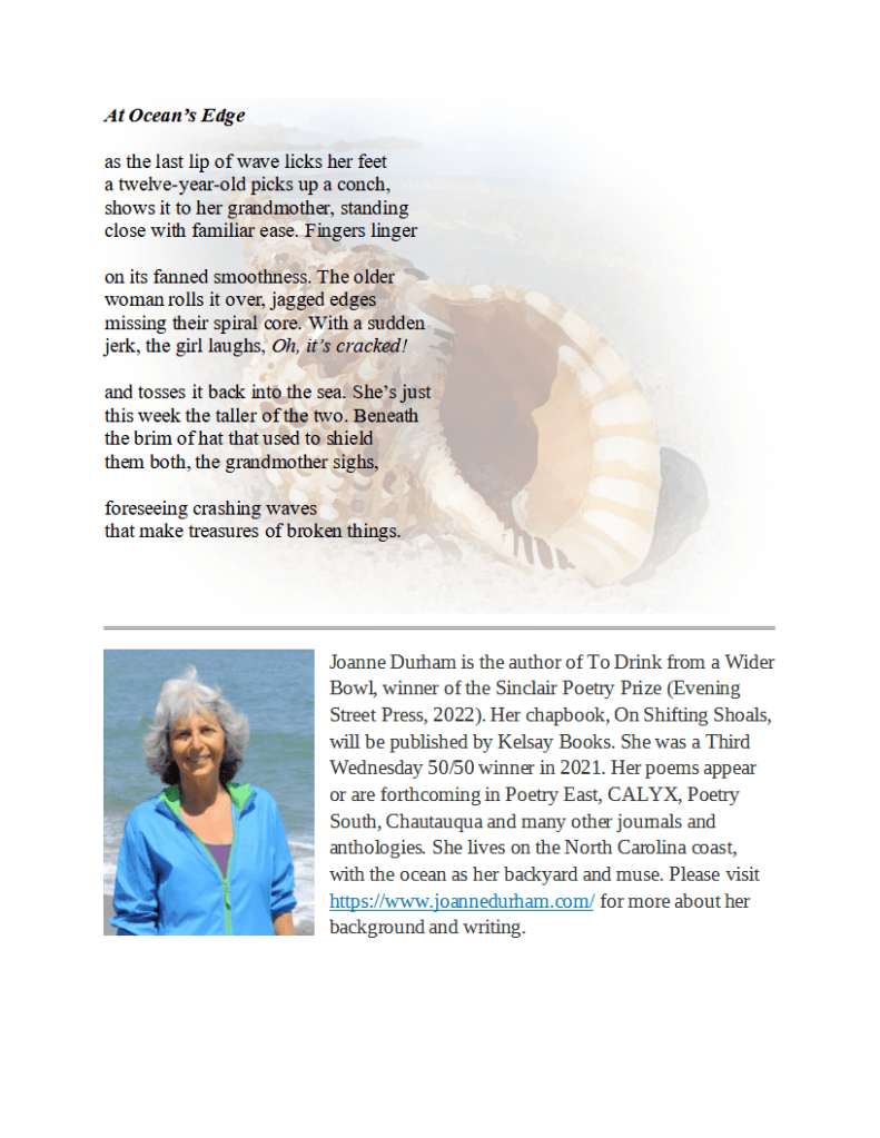 At Ocean’s Edge / Joanne Durham Published on August 20, 2022 by Editorial Staff https://www.joannedurham.com/ Share this: Click to share on X (Opens in new window) X Click to share on Facebook (Opens in new window) Facebook Like Loading... Related