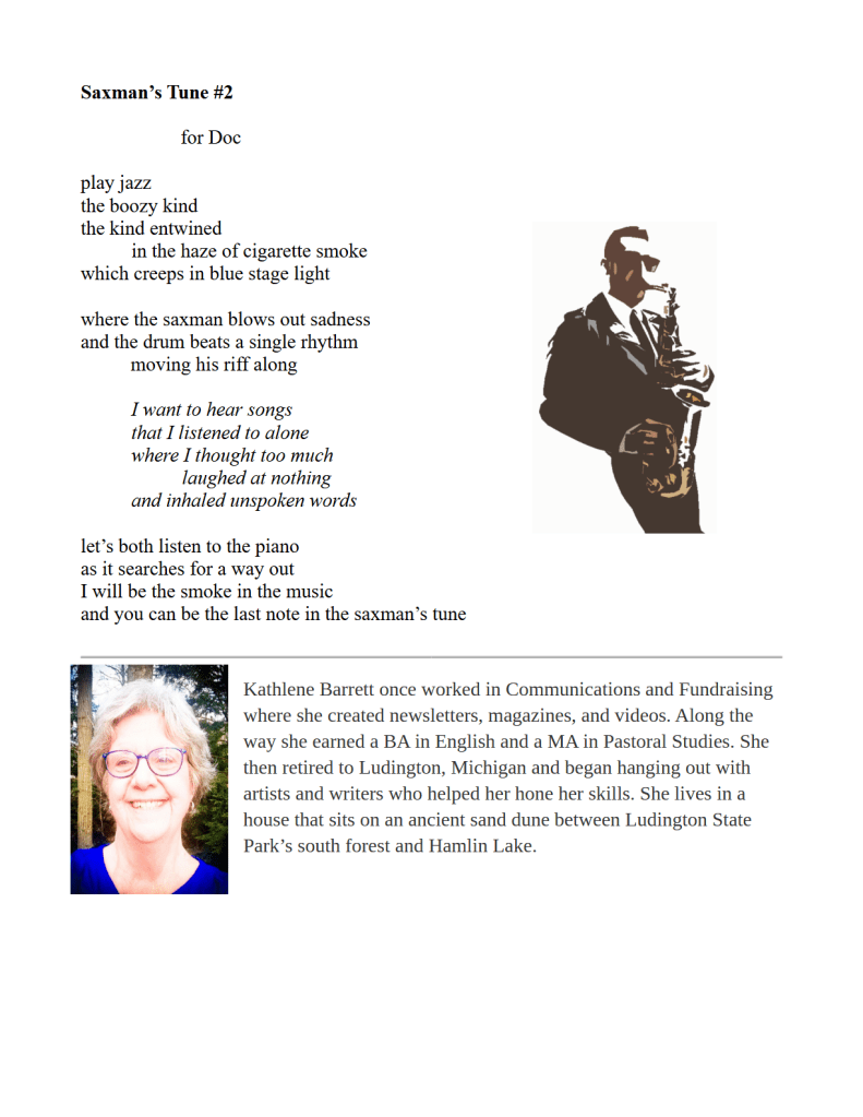Saxman’s Tune #2 / Kathlene Barrett Published on April 20, 2023 by Editorial Staff Share this: Click to share on X (Opens in new window) X Click to share on Facebook (Opens in new window) Facebook Like Loading... Related