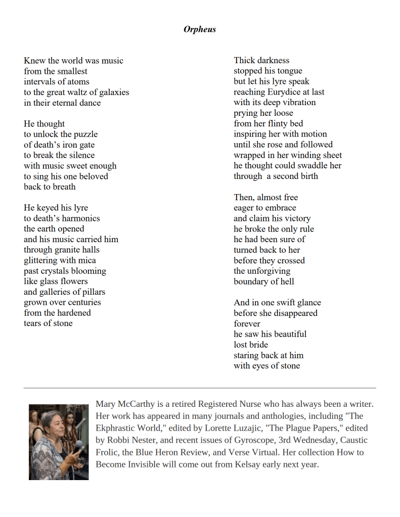 Orpheus / Mary McCarthy Published on June 26, 2023June 26, 2023 by Editorial Staff Share this: Click to share on X (Opens in new window) X Click to share on Facebook (Opens in new window) Facebook Like Loading... Related