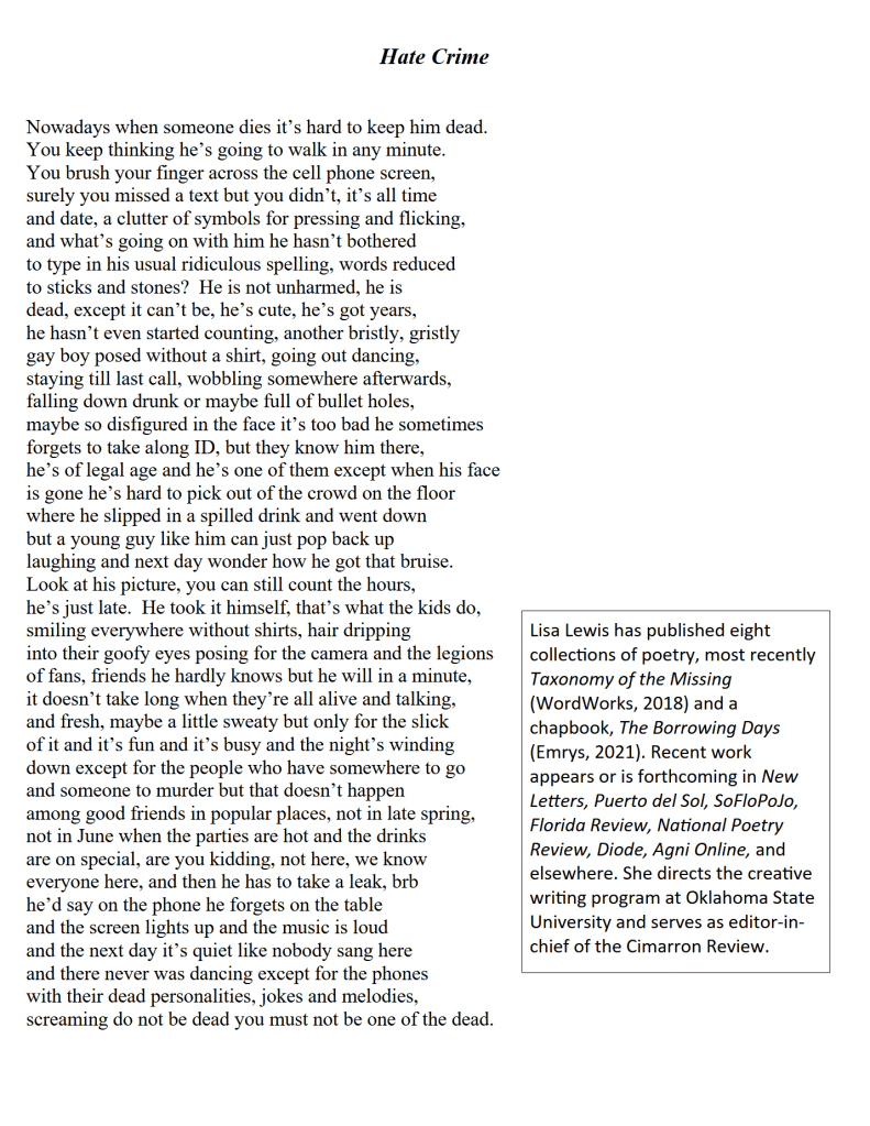 Hate Crime / Lisa Lewis Published on July 31, 2023 by Editorial Staff Share this: Click to share on X (Opens in new window) X Click to share on Facebook (Opens in new window) Facebook Like Loading... Related