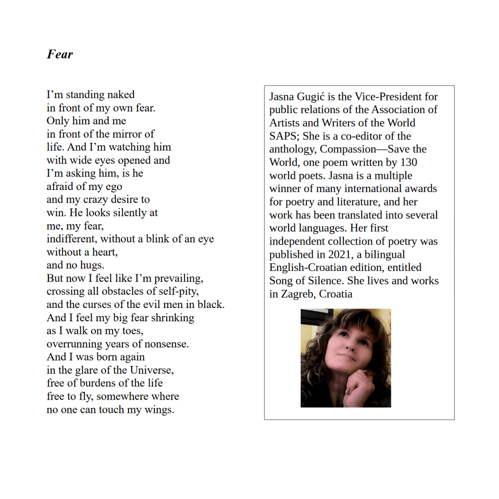 Fear / Jasna Gugić Published on October 14, 2023 by Editorial Staff Share this: Click to share on X (Opens in new window) X Click to share on Facebook (Opens in new window) Facebook Like Loading... Related
