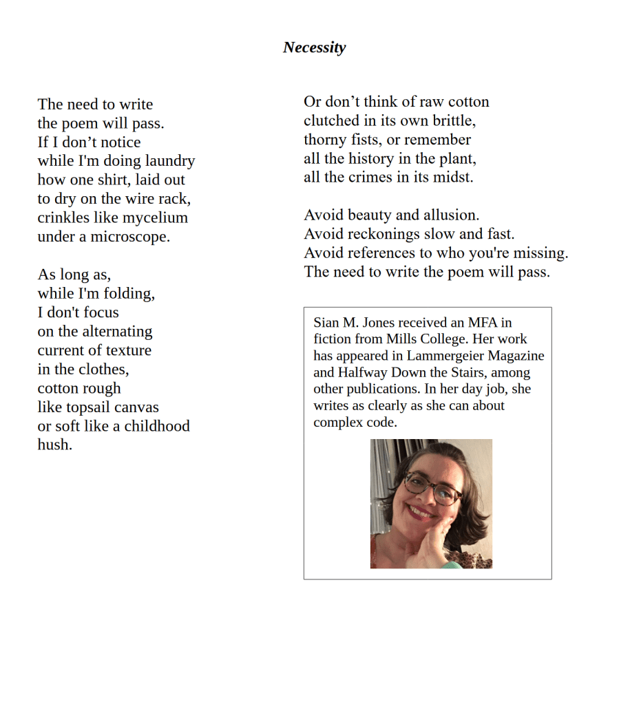Necessity / Sian Jones Published on February 17, 2024 by Editorial Staff https://jonessian.com/ Share this: Click to share on X (Opens in new window) X Click to share on Facebook (Opens in new window) Facebook Like Loading... Related