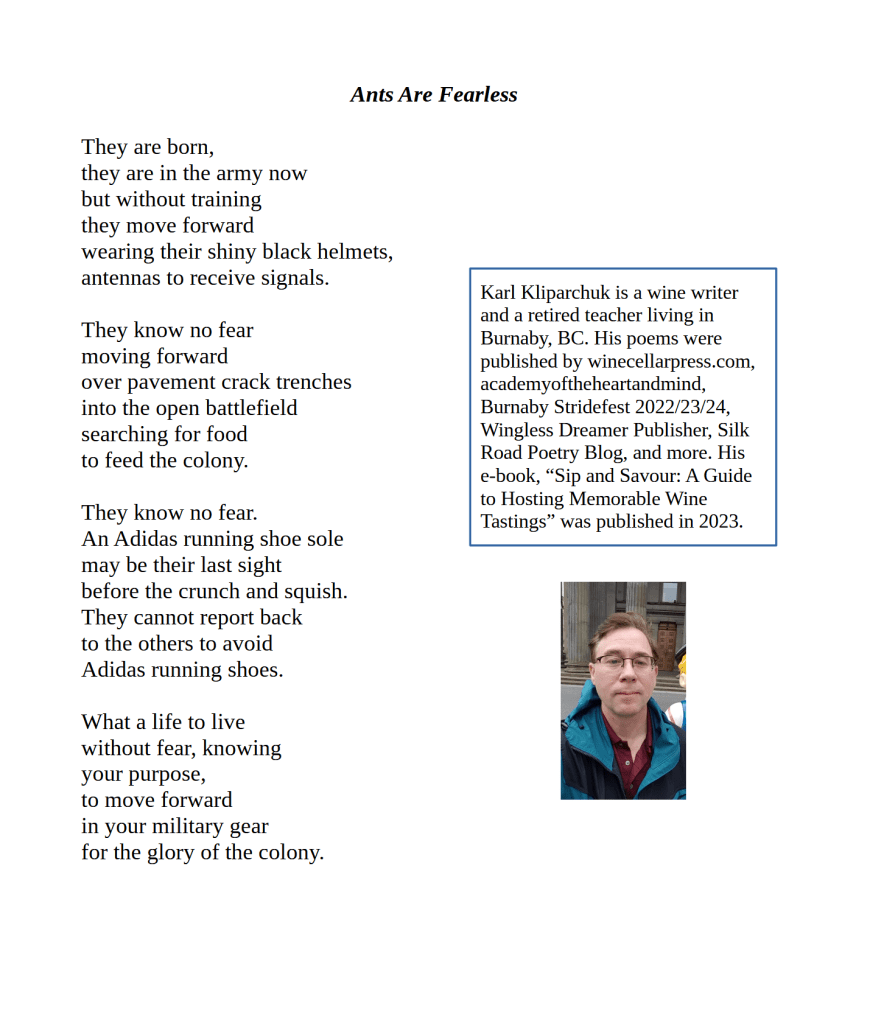 Ants Are Fearless / Karl Kliparchuk Published on April 5, 2024 by Editorial Staff Share this: Click to share on X (Opens in new window) X Click to share on Facebook (Opens in new window) Facebook Like Loading... Related