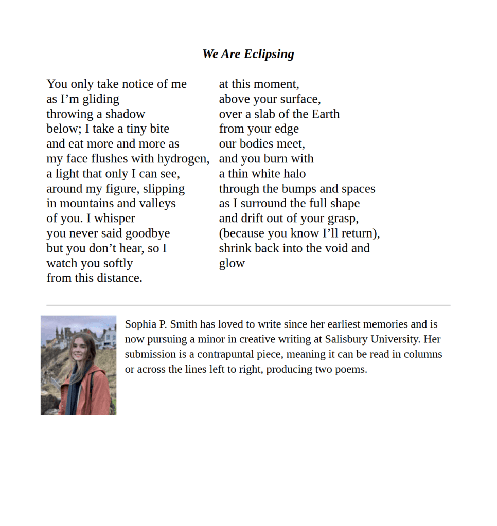 We Are Eclipsing / Sophia Smith Published on June 25, 2024 by Editorial Staff Share this: Click to share on X (Opens in new window) X Click to share on Facebook (Opens in new window) Facebook Like Loading... Related