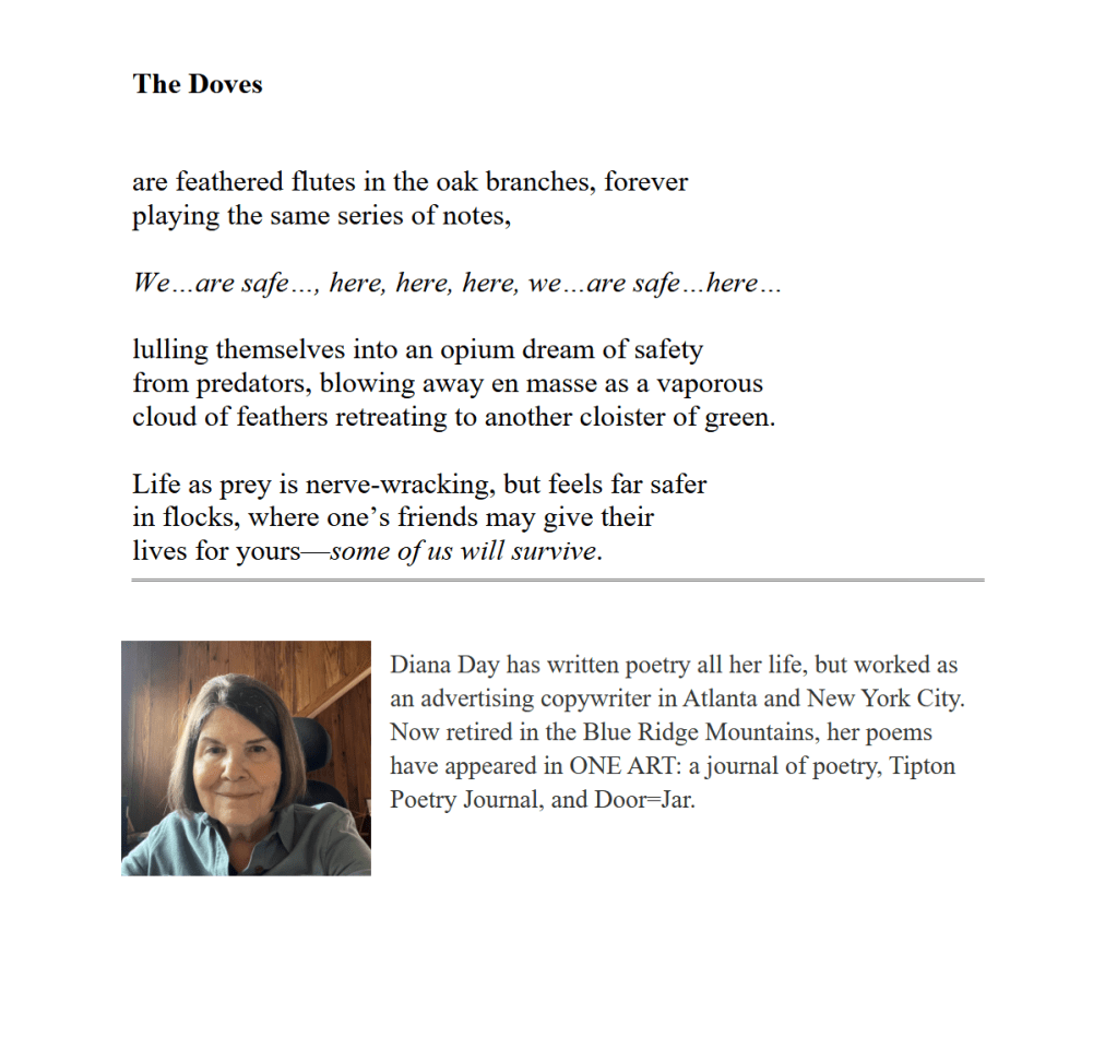 The Doves / Diana Day Published on May 16, 2025 by Editorial Staff Share this: Click to share on X (Opens in new window) X Click to share on Facebook (Opens in new window) Facebook Like Loading... Related