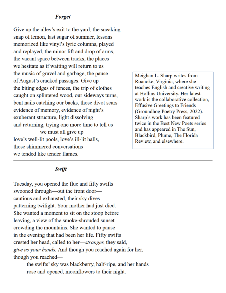 Two Poems by Meighan L. Sharp Published on June 8, 2025 by Editorial Staff Share this: Click to share on X (Opens in new window) X Click to share on Facebook (Opens in new window) Facebook Like Loading... Related