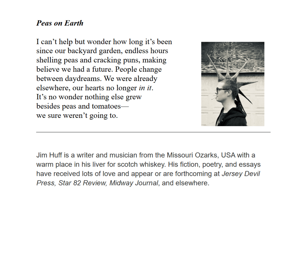 Peas On Earth / James Huff Published on September 18, 2025 by Editorial Staff Share this: Click to share on X (Opens in new window) X Click to share on Facebook (Opens in new window) Facebook Like Loading... Related