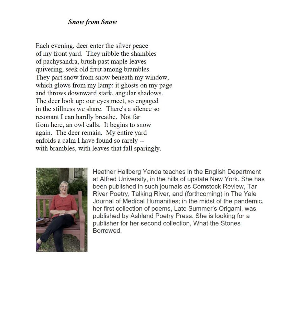 Snow from Snow / Heather Hallberg Yanda Published on December 21, 2025 by Editorial Staff Share this: Click to share on X (Opens in new window) X Click to share on Facebook (Opens in new window) Facebook Like Loading... Related