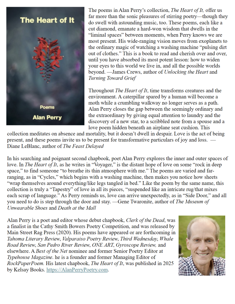 Visit 3rd Wednesday’s YouTube Channel for a recorded reading by Alan Perry.