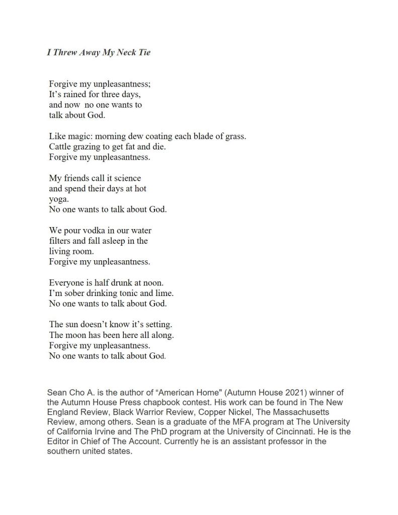 Two Poems by Cindy Buchanan Published on January 2, 2026January 2, 2026 by Editorial StaffLeave a comment https://www.cindybuchanan.com/