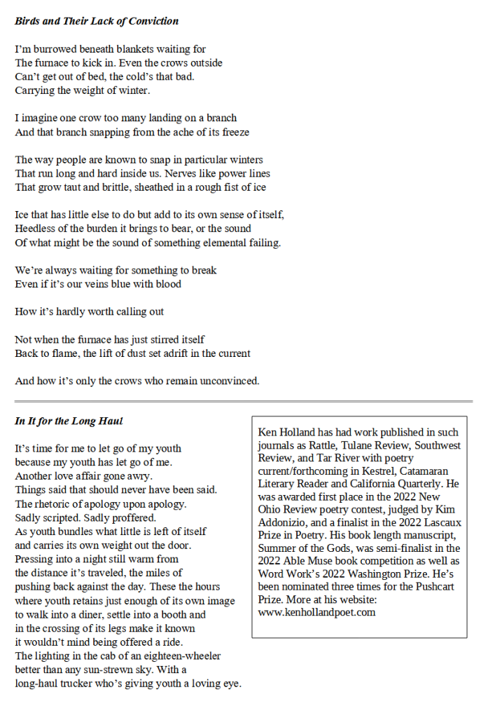 Poses / Joseph Kenyon Published on January 9, 2023 by Editorial Staff https://www.josephkenyonlit.com/