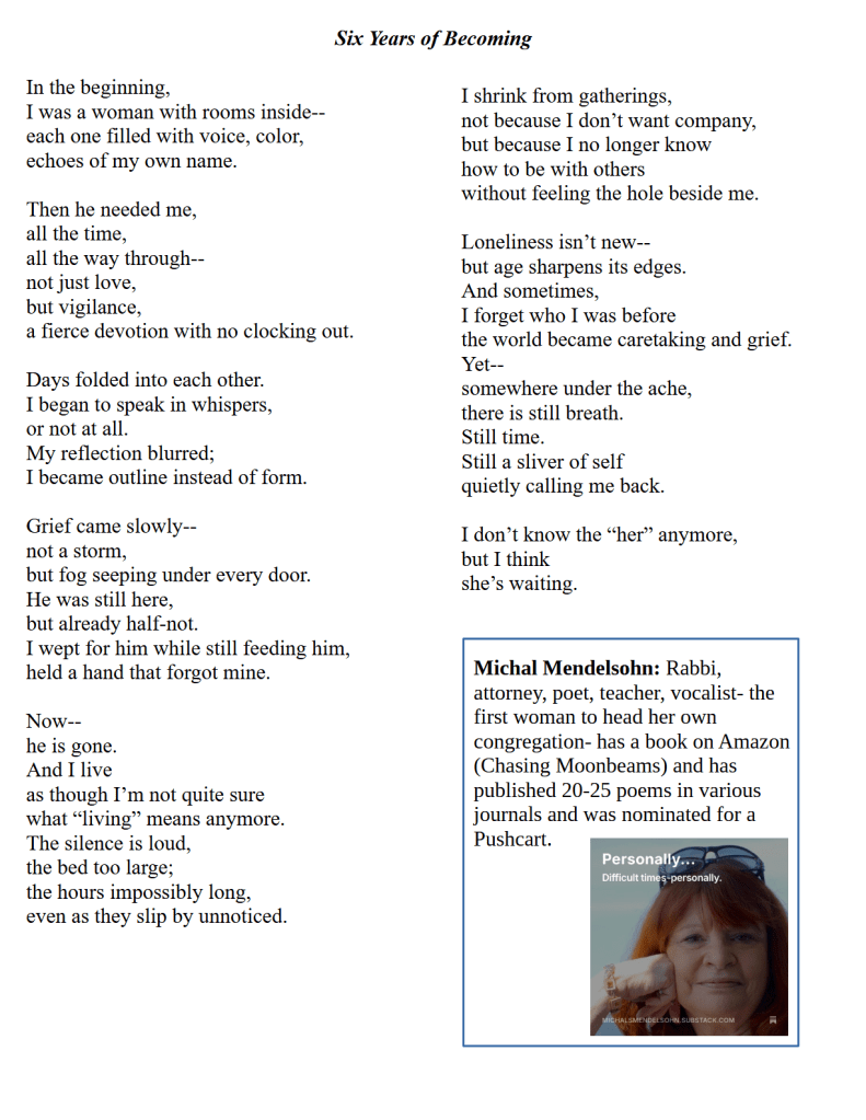 Six Years of Becoming / Michal Mendelsohn Published on July 20, 2025July 20, 2025 by Editorial Staff https://michalsmendelsohn.substack.com/