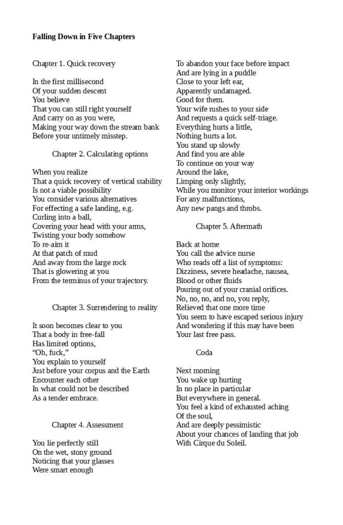 I’ve read this author in many publications over the years, and listened to his own gently cadenced readings on his podcast, and I love his poetry. Wit, imagination, a perfect ear, and an effortless touch (not to mention knee-slapping punchlines) mark all of Whitman-Bradley’s work, and the poems in this book are no different. The poet is forgivingly and unforgivingly self-aware, somehow finding all the poetry in life’s least poetic moments. ~Roger Stoll, essayist and poet