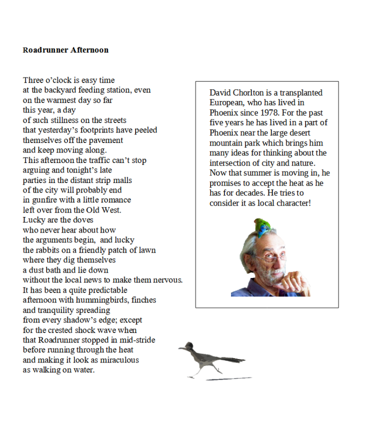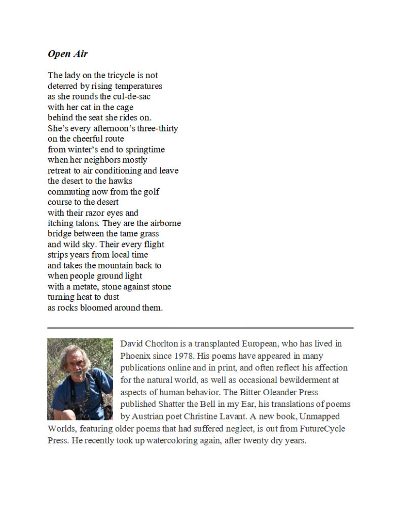 Our Poem of the Week by David Chorlton will appear in the Winter issue of 3rd Wednesday.