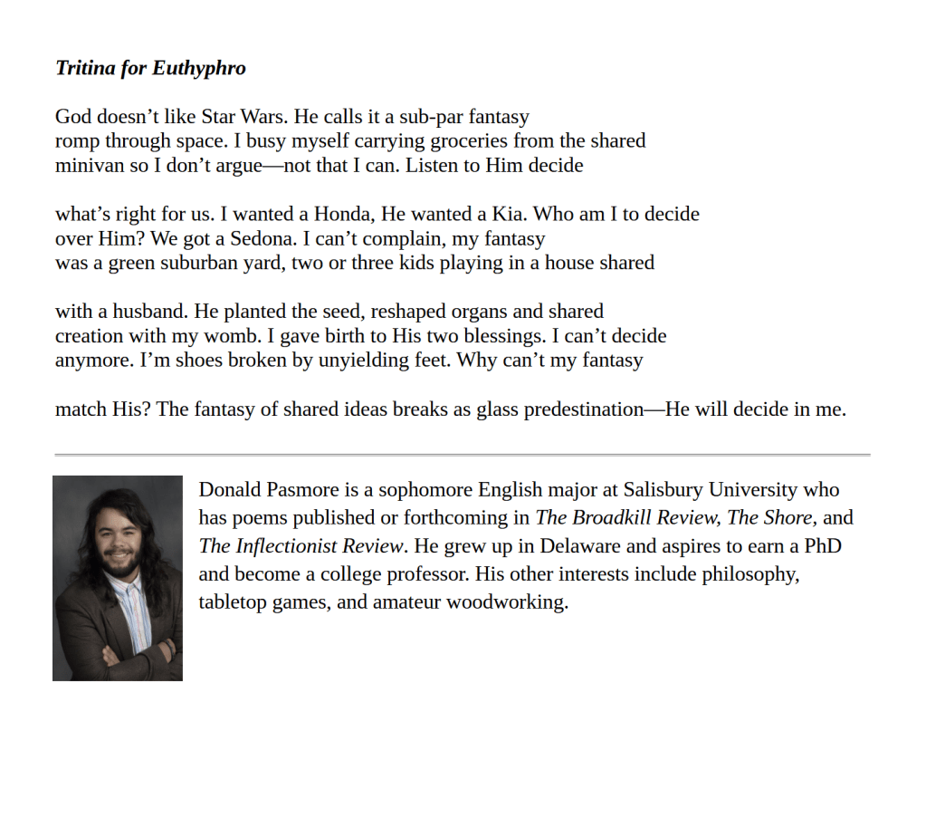 Our Poem of the Week is an ekphrastic piece from William Snyder, a North Dakota poet who has appeared in the pages of 3rd Wednesday a number of times. It’s a preview from our fall issue, which should be out near the end of September.