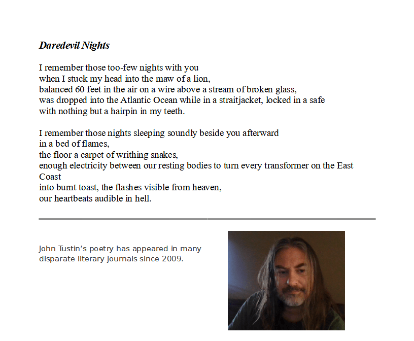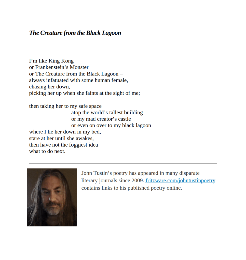 Two Poems by John Tustin Published on March 24, 2022 by Editorial Staff http://fritzware.com/johntustinpoetry/