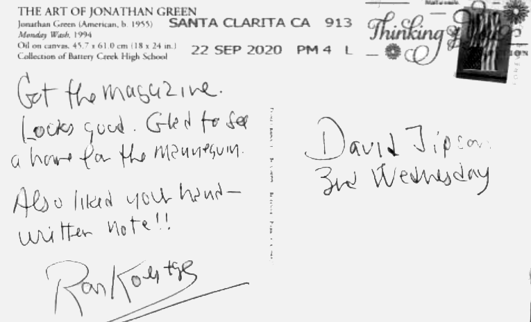 Something special from the just released Autumn issue of 3rd Wednesday: A flash piece by Ron Koertge (yes, that Ron Koertge). Ron is a poet and novelist specializing in youth fiction. His latest poetry collection is Yellow Moving Van. His flash fiction collection, which he told me that wrote “one-a-day” is titled Sex World. I suspect Ron, like the Canadian rockers Barenaked Ladies, thought the name would mean a big seller.
