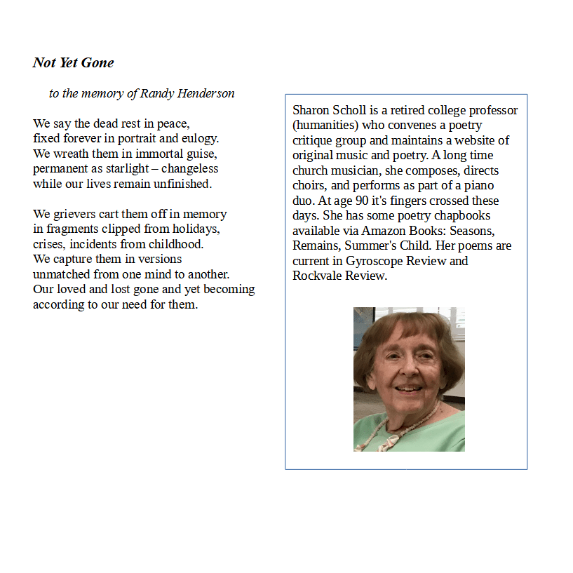 Not Yet Gone / Sharon Scholl Published on December 21, 2022 by Editorial Staff3 Comments /https://freeprintmusic.com/